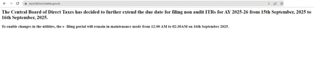 - Technical Updates in the Portal: With millions of taxpayers filing returns simultaneously, glitches in the Income Tax e-filing portal are common. The short maintenance window on 16th September 2025 is to ensure smooth functioning.